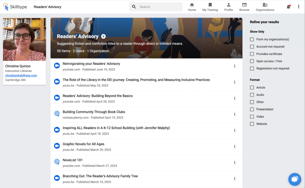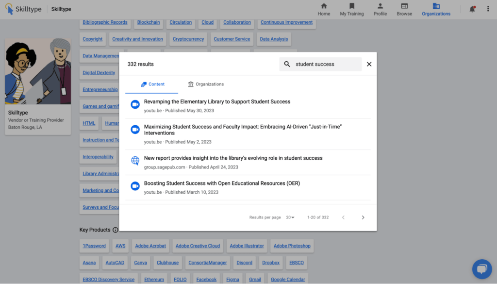 This summer, the content team at Skilltype, the leading provider of talent management software designed for libraries and information professionals, is excited to announce a significant expansion to its content offerings. In response to the evolving trends we’ve added 2,600 library training resources to Skilltype’s curated index. These resources reinforce our dedication to offering the most relevant and current content to support our community’s ongoing professional development. As a result of this expansion, the Skilltype community now enjoys access to an repository of more than 9,600 items.