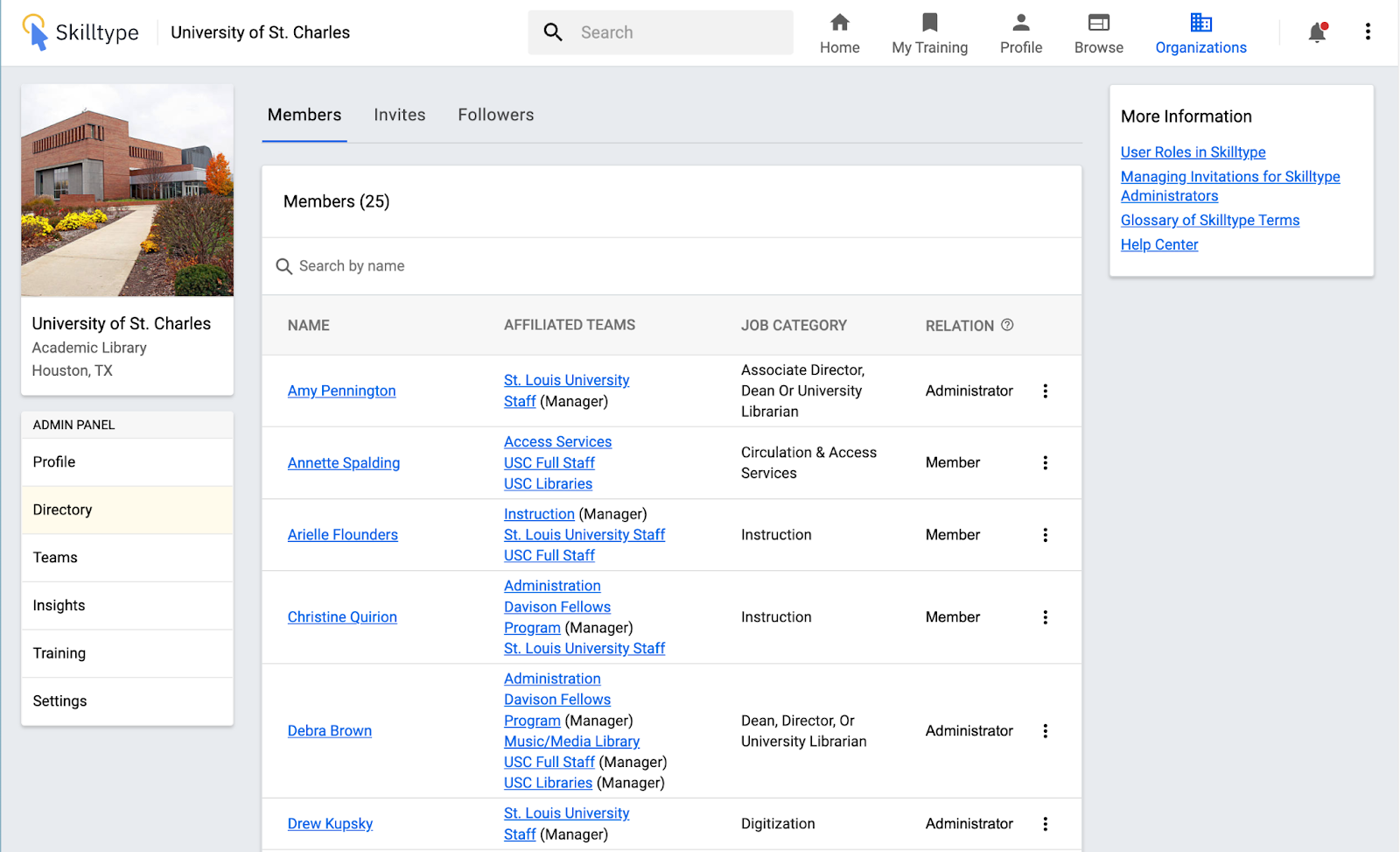 • Easily find other Skilltype users in your Library with your organization’s directory.