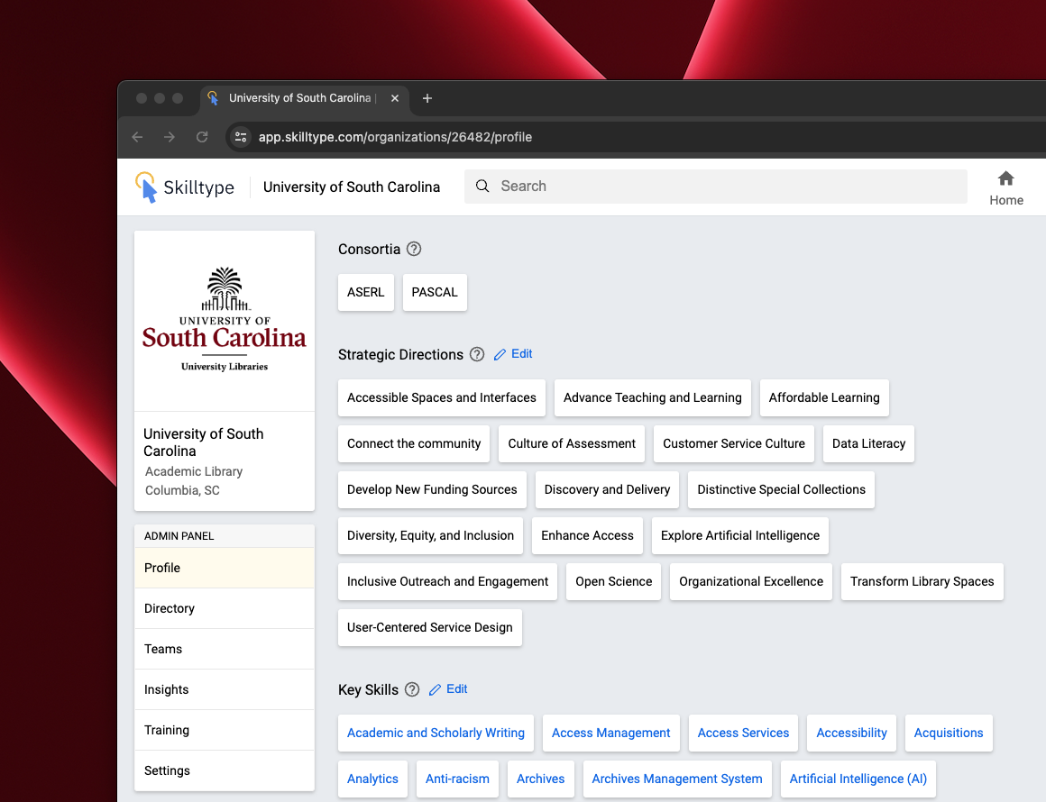 The University of South Carolina Libraries partners with Skilltype to manage skill development across their staff, becoming the 19th member of the Association of Research Libraries to join the Skilltype community.