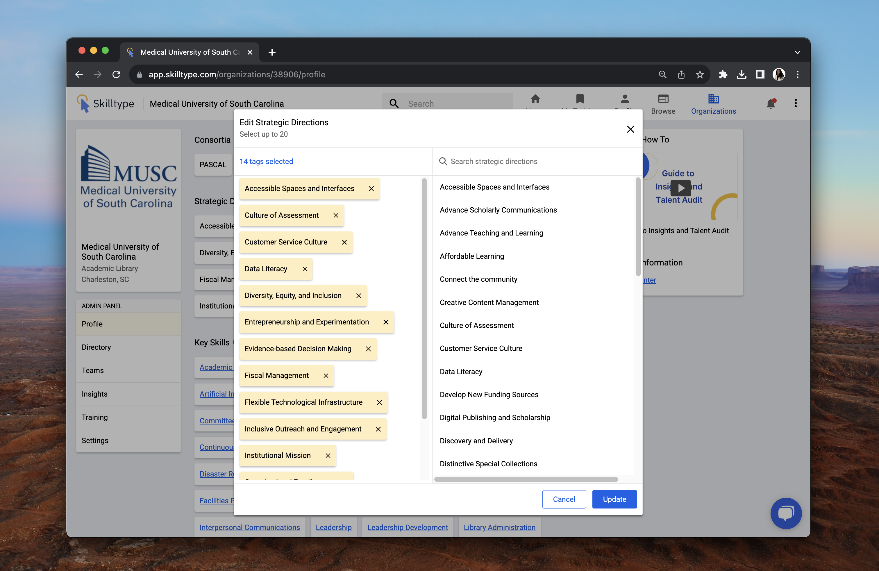 With a vision for a unified and strategic approach, MUSC Libraries sought out a solution that promised flexibility and a simple user experience. Skilltype emerged—a state-of-the-art platform specifically designed for libraries to improve professional development and talent management.
