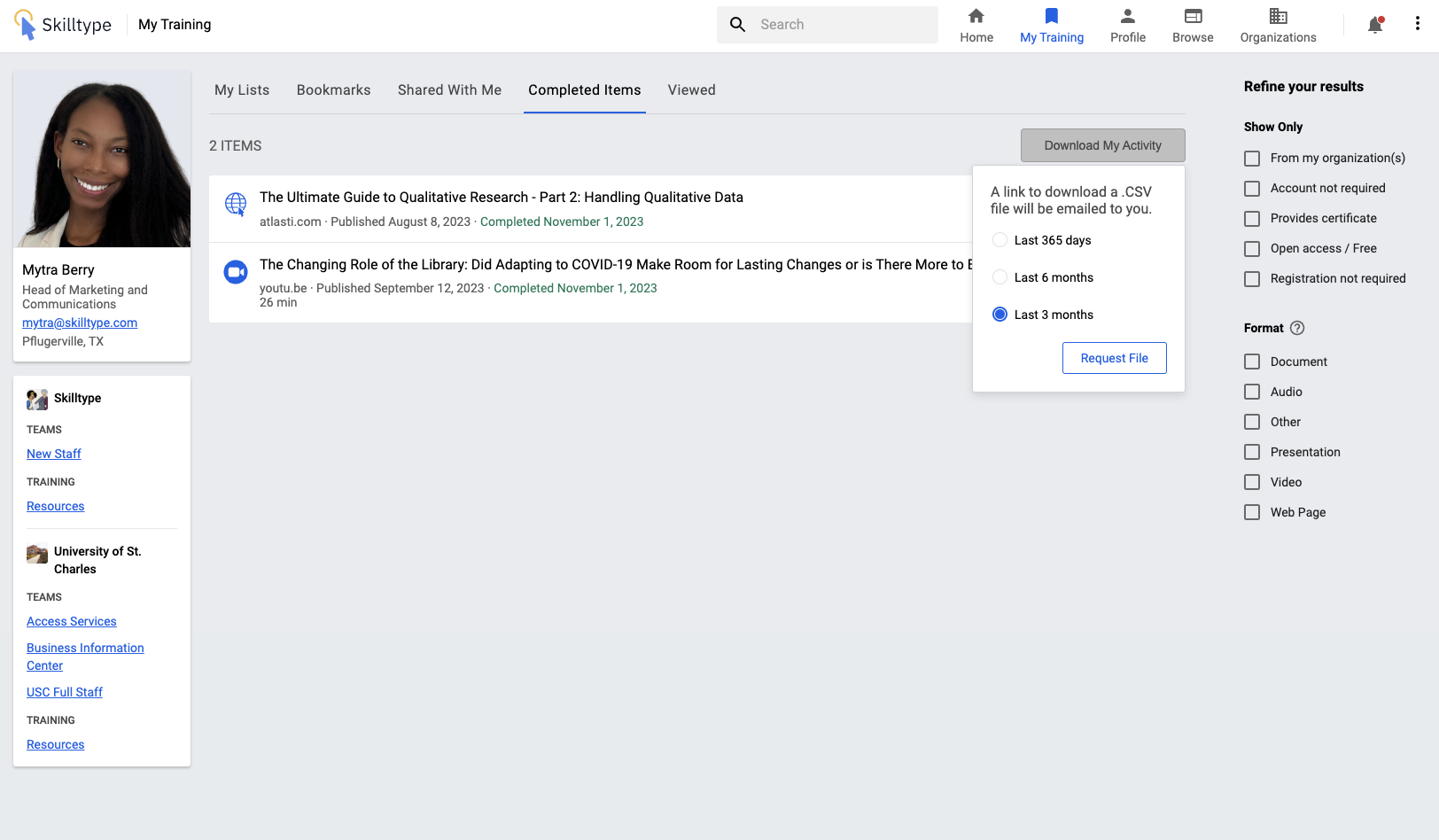 Help your staff make informed decisions about what items to view or read based on their available time and training duration.