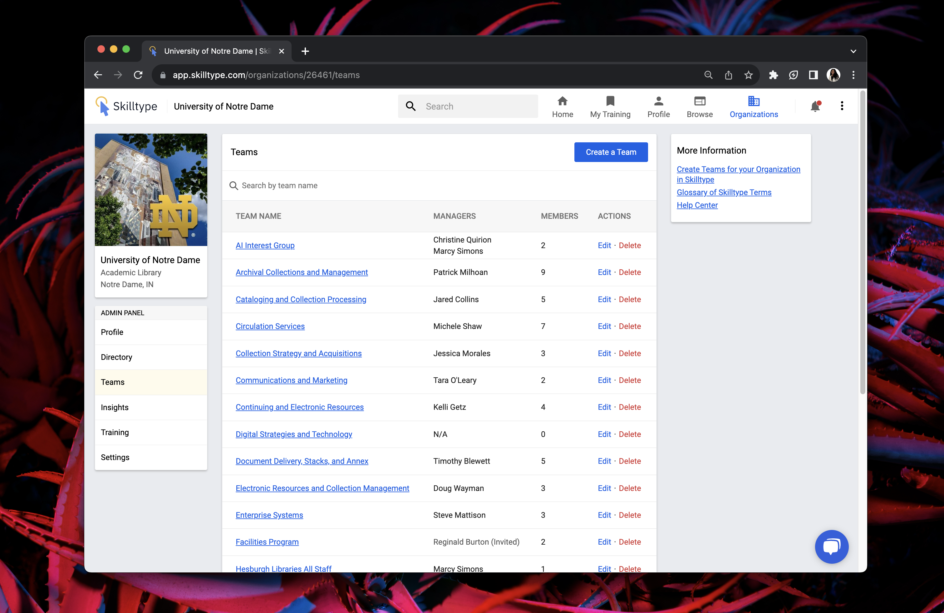 Harnessing the collective expertise of your library staff starts with a structured yet flexible approach to team management. The Skilltype platform helps you organize your staff.