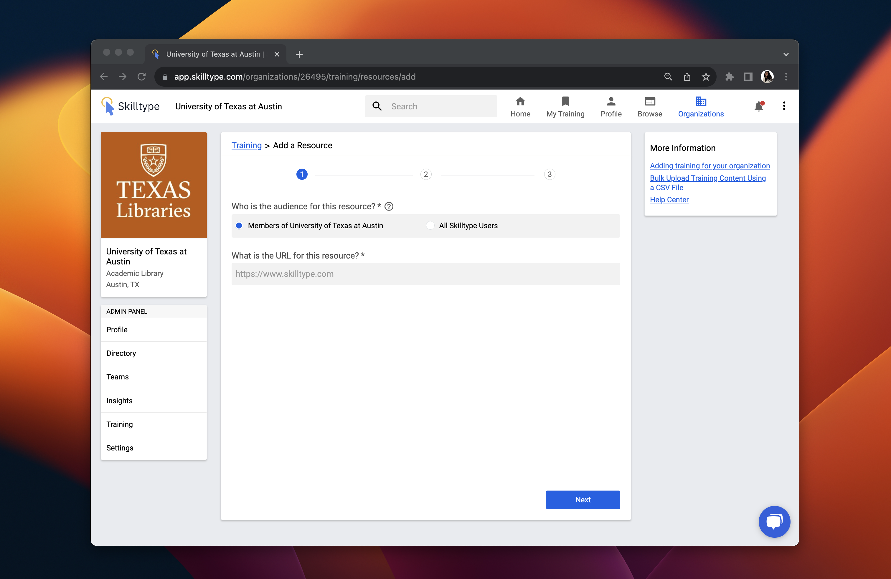 - Skilltype allows the inclusion of exclusive organization-specific content.